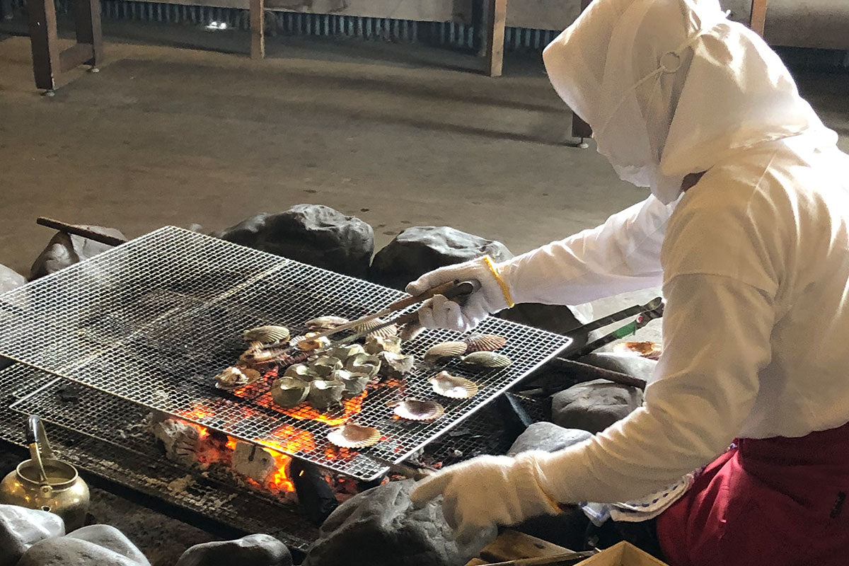 *Hachiman Kamado - Enjoy talking with real 'ama' divers in person about their traditional free-diving lifestyle and daily routines. You will enjoy freshly grilled seafood, cooked over chocoal in front of you.